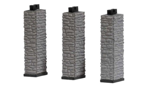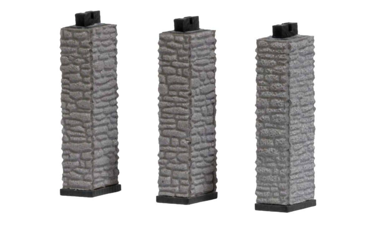 Inhalt: 3 Brückenpfeiler jeweils ca. 46 mm hoch. Passend für Brückenelemente 12385 bzw. 12386 für gerade oder gebogene Feldbahngleise.