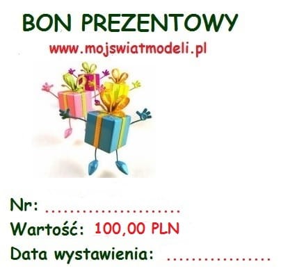 Jak zrealizować Bon prezentowy mojswiatmodeli - należy złożyć w mojswiatmodeli zamówienie i wpisać numer Bonu prezentowego w pole uwagi do zamówienia – jeżeli kwota, na którą opiewa zamówienie jest mniejsza lub równa wartości Bonu, zamówienie zostanie oznaczone jako opłacone. Jeśli jednak obdarowany zdecyduje się na większe zakupy, różnicę należy wpłacić na konto mojswiatmodeli w terminie 10 dni od daty złożenia zamówienia. W przypadku zamówień na niższą kwotę niż wartość Bonu prezentowego, mojswiatmodeli nie zwraca różnicy. Bon prezentowy mojswiatmodeli można wykorzystać tylko jeden raz i nie podlega on zwrotowi.