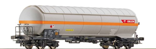 4-achsiger Druckgaskesselwagen mit Sonnenschutzdach als Privatwagen der Firma „ORLEN“, eingestellt bei der Polnischen Staatsbahn (PKP). Betriebszustand: ca. 2005. Einsatz: Transport von Gas.