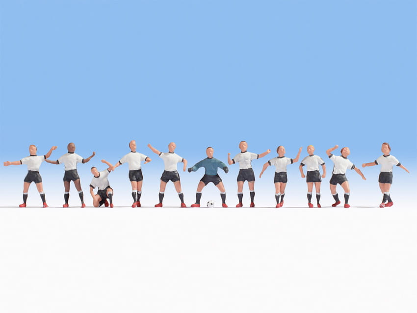 Für alle Fans gibt es jetzt auch ein Fußballteam in der Spurweite TT, also dem Maßstab 1:120, für die Modellbahnanlage. Alle 11 Figuren sind handbemalt.