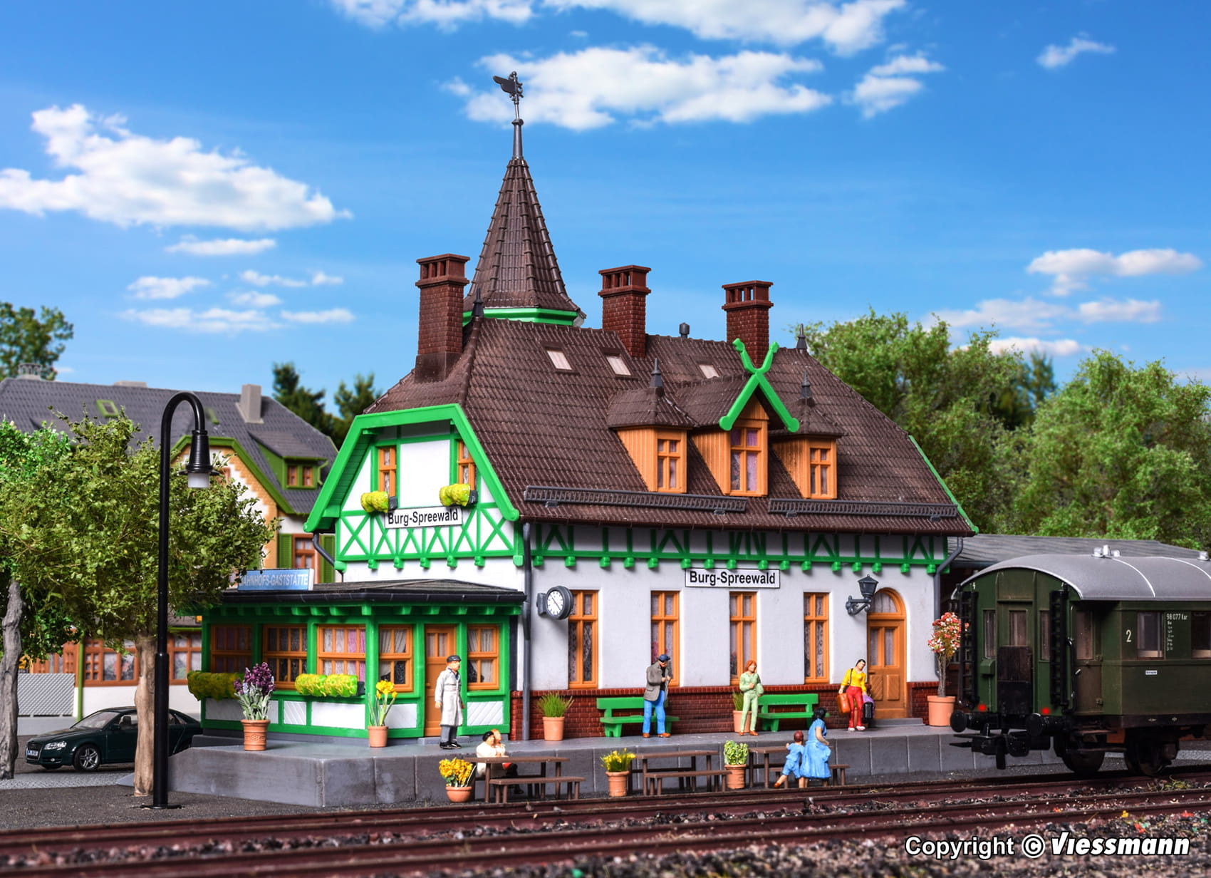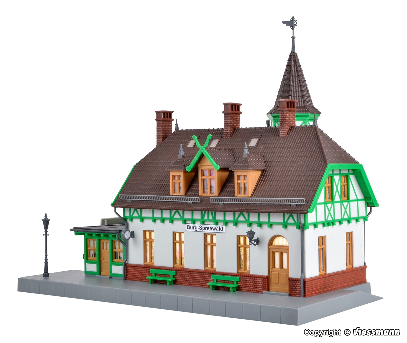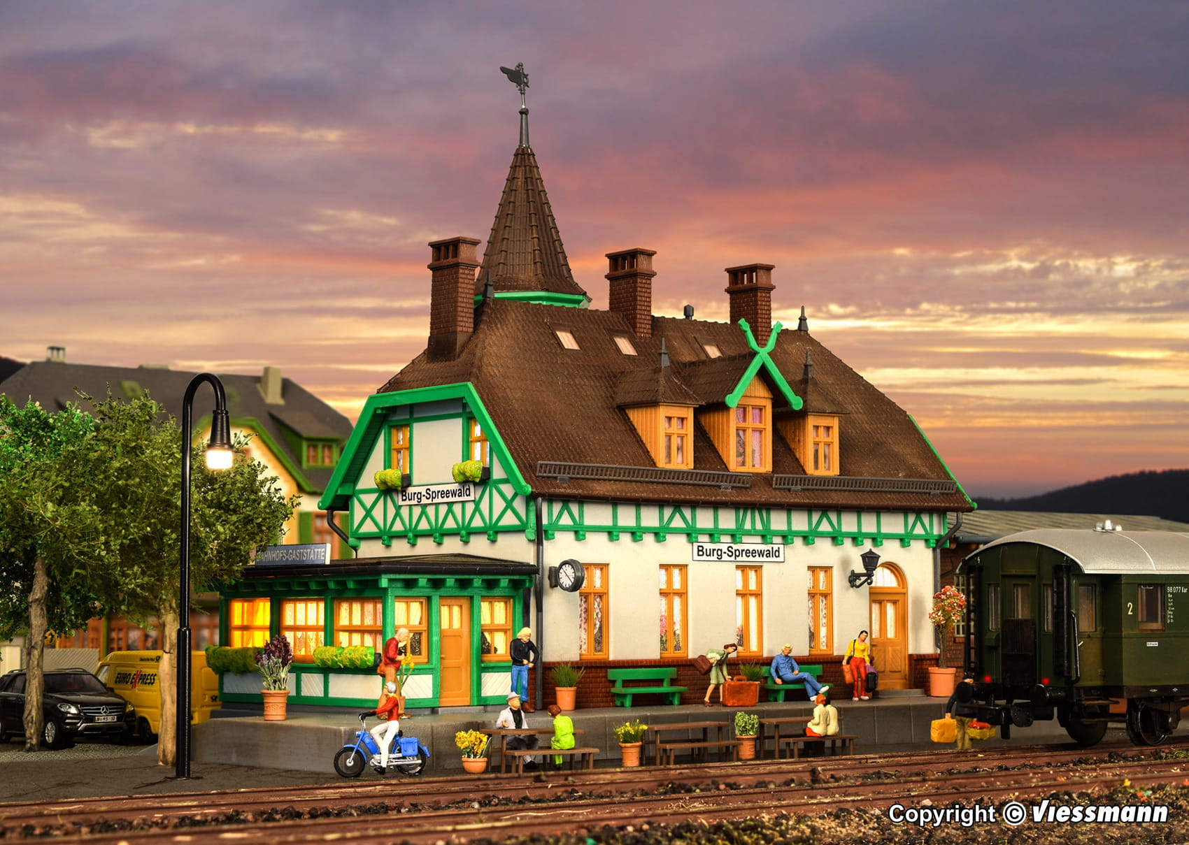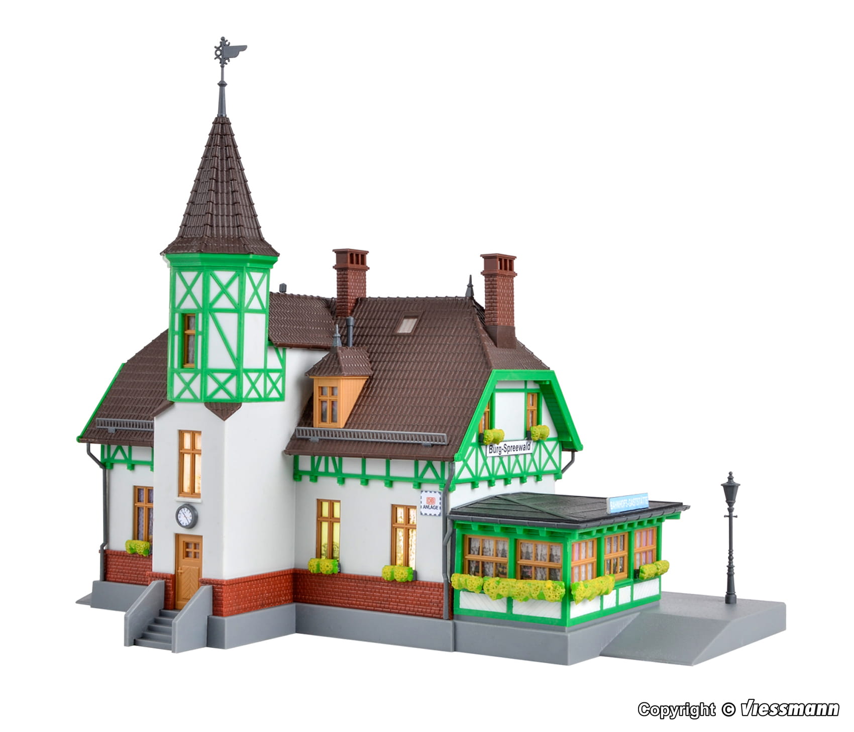Funktionsbausatz. Kähne, Trachten und Gurken bringt der Otto-Normalverbraucher mit dem Spreewald in Verbindung. Der Eisenbahnfreund hingegen verbindet mit der Region im Süden Brandenburgs das rund 85 Kilometer lange Schmalspurnetz zwischen Lübben, Goyatz, Lieberose und Cottbus. Obwohl hier seit 1970 keine Züge mehr verkehren, gehört die zwischen 1898 und 1904 eröffnete Spreewaldbahn zu den bekanntesten Schmalspurbahnen in Deutschland. Kein Wunder, denn die kleinen Maschinen und die kurzen Züge der Spreewald-Guste verkörperten wie kaum eine andere Strecke Bimmelbahn-Romantik. Passend zu dieser Region gibt es bei kibri dieses schöne Gebäudemodell. Seit 1995 wird das historische Bahnhofsgebäude als Gaststätte benutzt. Hier kann man eine stattliche Sammlung von liebevoll restaurierten Eisenbahnwaggons, Draisinen und vielen weiteren Originalteilen der Bimmelguste bewundern. Die passende LED-Beleuchtung für ein Fenster liegt dem Bausatz bei. Sie ist einfach zu montieren und genau auf das Modell abgestimmt. Mit Stecksystem. Hergestellt im Zweifarben-Spritzgießverfahren. Maße: L 23,5 x B 16 x H 20 cm. Schwierigkeitsgrad: 2 (Fortgeschrittene).
