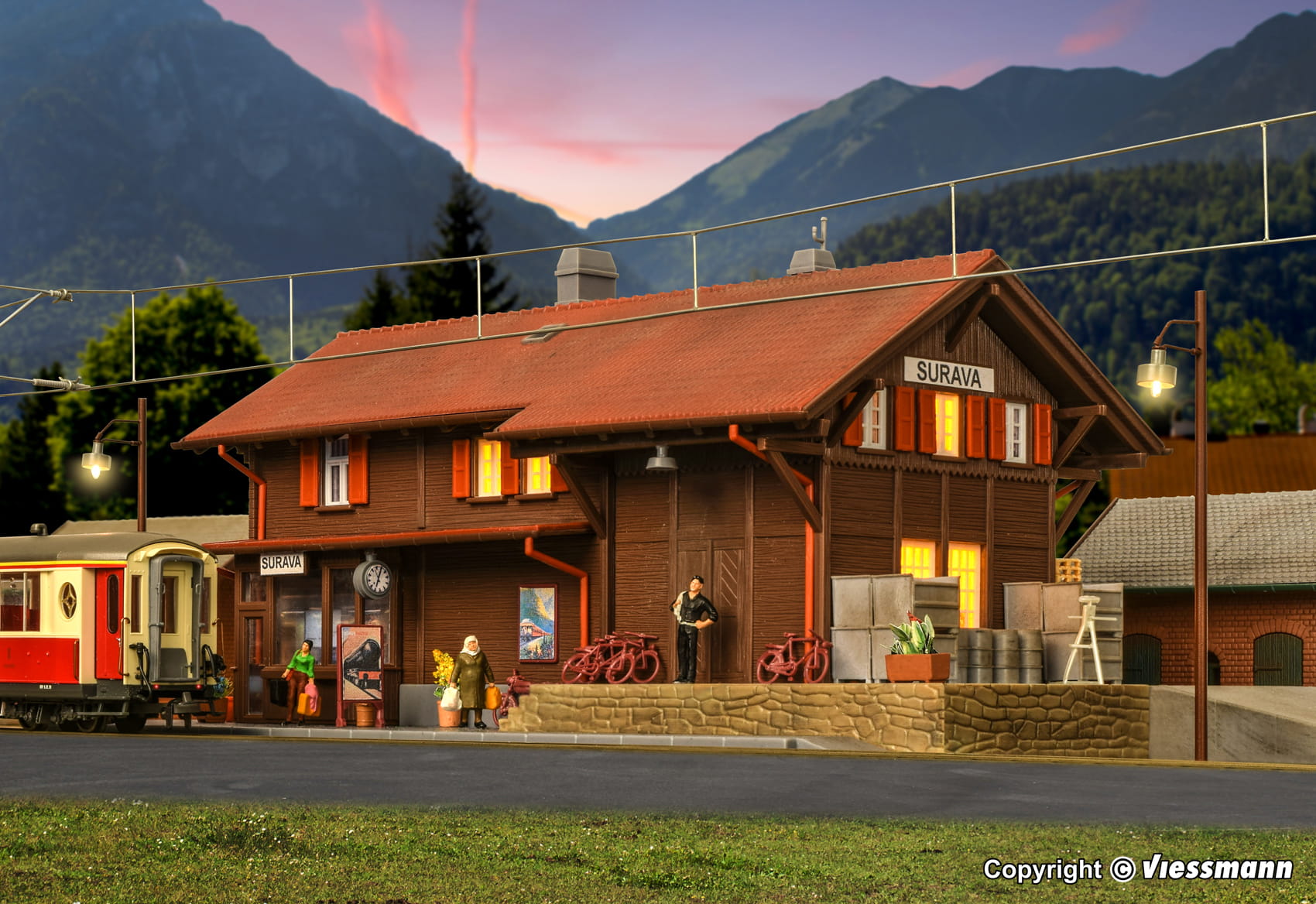 Funktionsbausatz. Die Station Surava liegt am Eingang zum Albulatal in der Schweiz. Die passende LED-Beleuchtung für ein Fenster liegt dem Bausatz bei. Sie ist einfach zu montieren und genau auf das Modell abgestimmt. Mit Stecksystem. Maße: L 31 x B 14 x H 11,5 cm. Schwierigkeitsgrad: 2 (Fortgeschrittene).