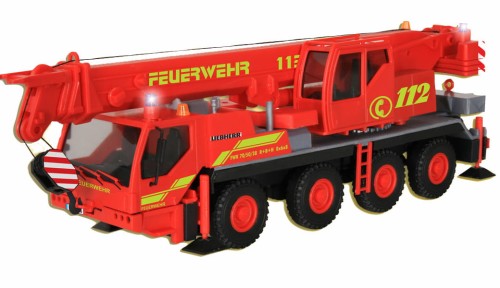 Feuerwehr Kranwagen LIEBHERR LTM 1050/4 Moderner Schwerlastkran der Feuerwehr zum Bergen bei schweren Unfällen. Maße ca. L 13,3 x B 3,3 x H 4,2 cm. Bausatz.