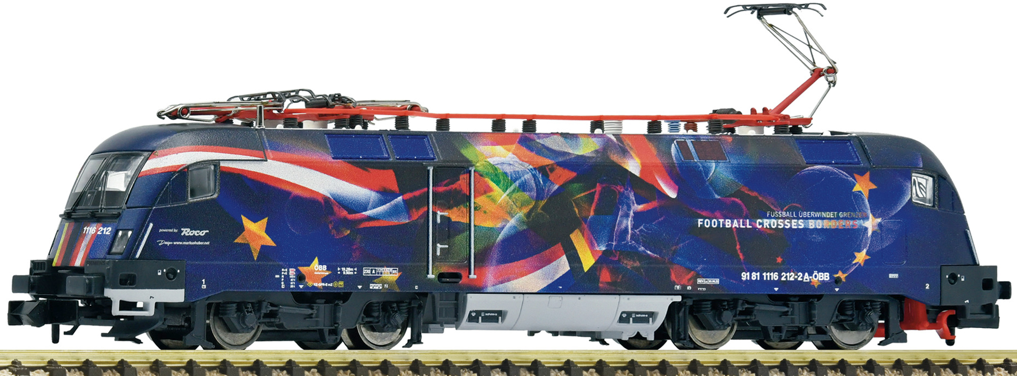Vorbild: Elektrolokomotive 1116 212 im „Fußball vereint Europa“-Design der Österreichischen Bundesbahnen.
