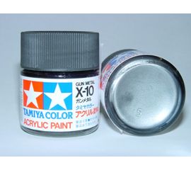 Farba akrylowa błyszcząca, X10 GUN METAL, poj. 10 ml, Tamiya 81510