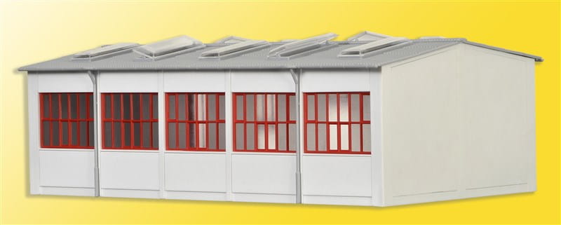 Bausatz. Mit einem 2. Bausatz ist die Halle nach hinten verlängerbar. Mit Stecksystem. Maße: L 34,5 x B 20 x H 11,5 cm. Schwierigkeitsgrad: 2 (Fortgeschrittene).