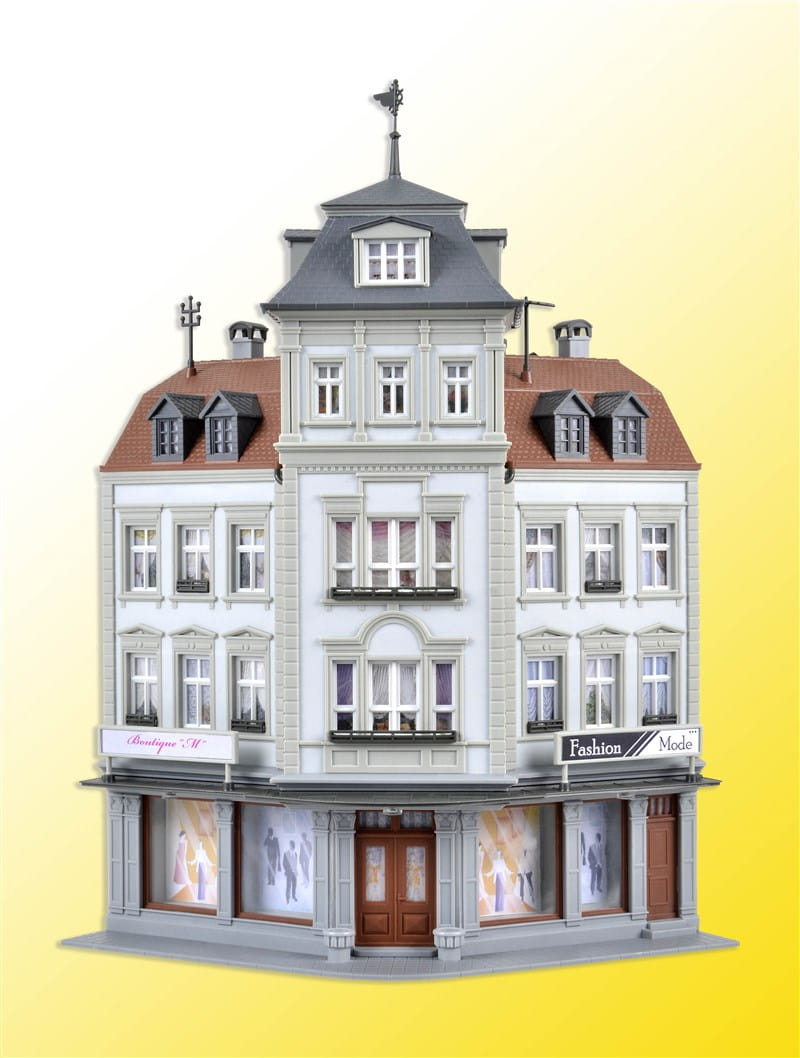 Bausatz. Mit Stecksystem. Hergestellt im Zweifarben-Spritzgießverfahren. Gebäudewinkel aus der Betrachtersicht: 120°. Maße: L 16,5 x B 19 x H 24 cm. Schwierigkeitsgrad: 2 (Fortgeschrittene).