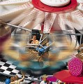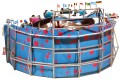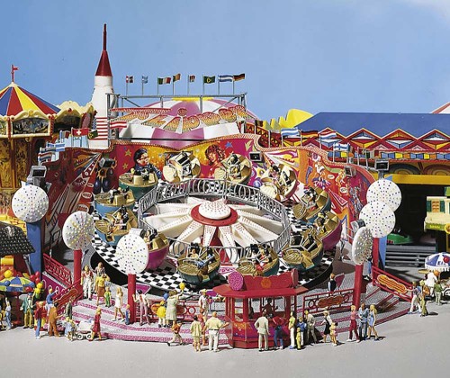 In atemberaubendem Tempo drehen sich die 12 zweisitzigen, bunten Gondeln im Kreis. Gleichzeitig hebt und senkt sich der gesamte rotierende Drehteller. Komplett mit Antriebsmotor (12–16 V, Wechselstrom).
