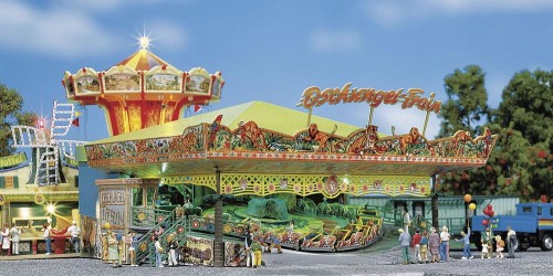 Die 20 bunten Gondeln flitzen in flotter Fahrt im Kreis, vorwärts und rückwärts. Komplett mit Antriebsmotor (12–16 V, Wechselstrom) und originalgetreuer Dekoration