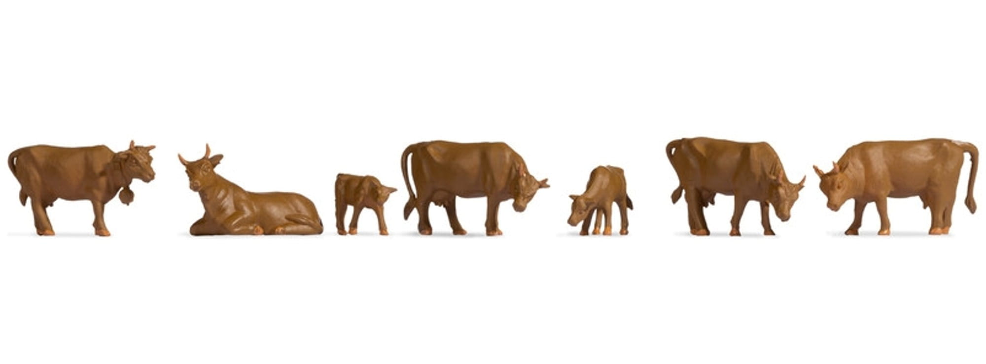 NOCH TT Kühe, braun | 7 Stück | Figuren Spur TT im Maßstab 1/120