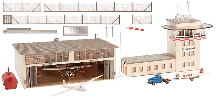 | Zawartość | Wieża, Hangar, 1 szybowiec, 1 samolot, ciągnik z przyczepą na szybowce |