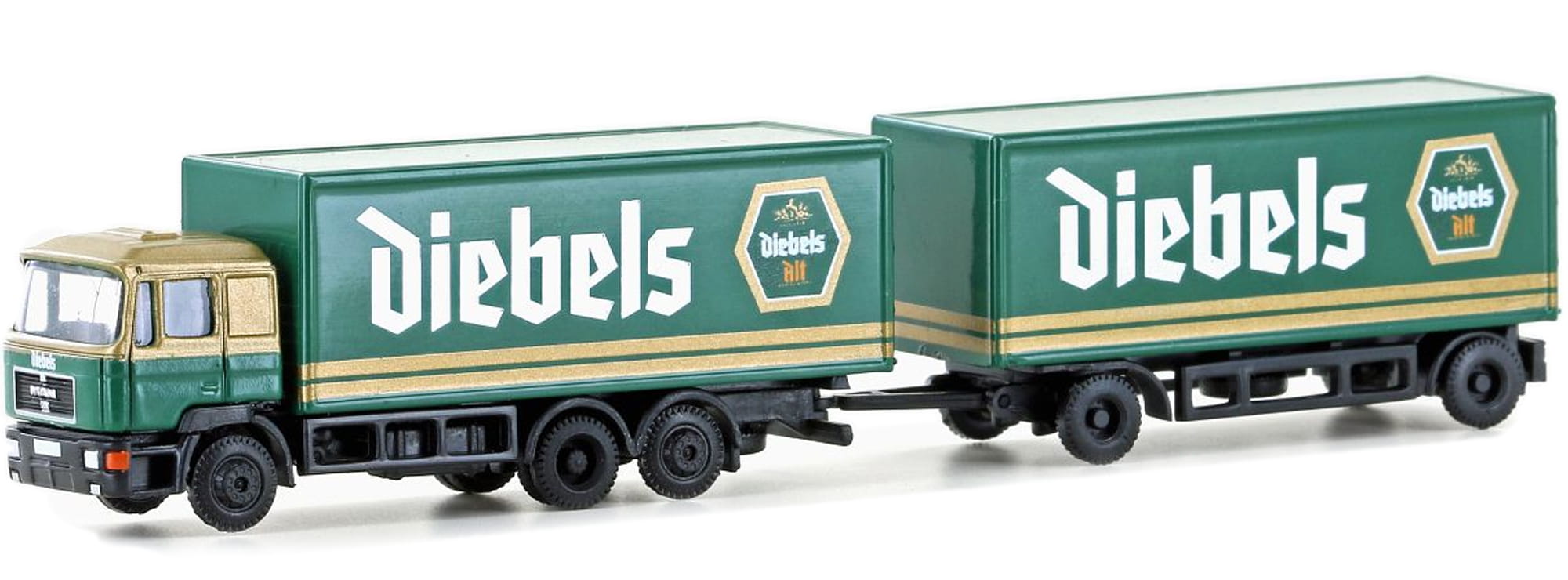 MAN F90 skrzynia z przyczepą, 3-osiowy "Diebels", skala N, MiNis/Lemke LC4606
