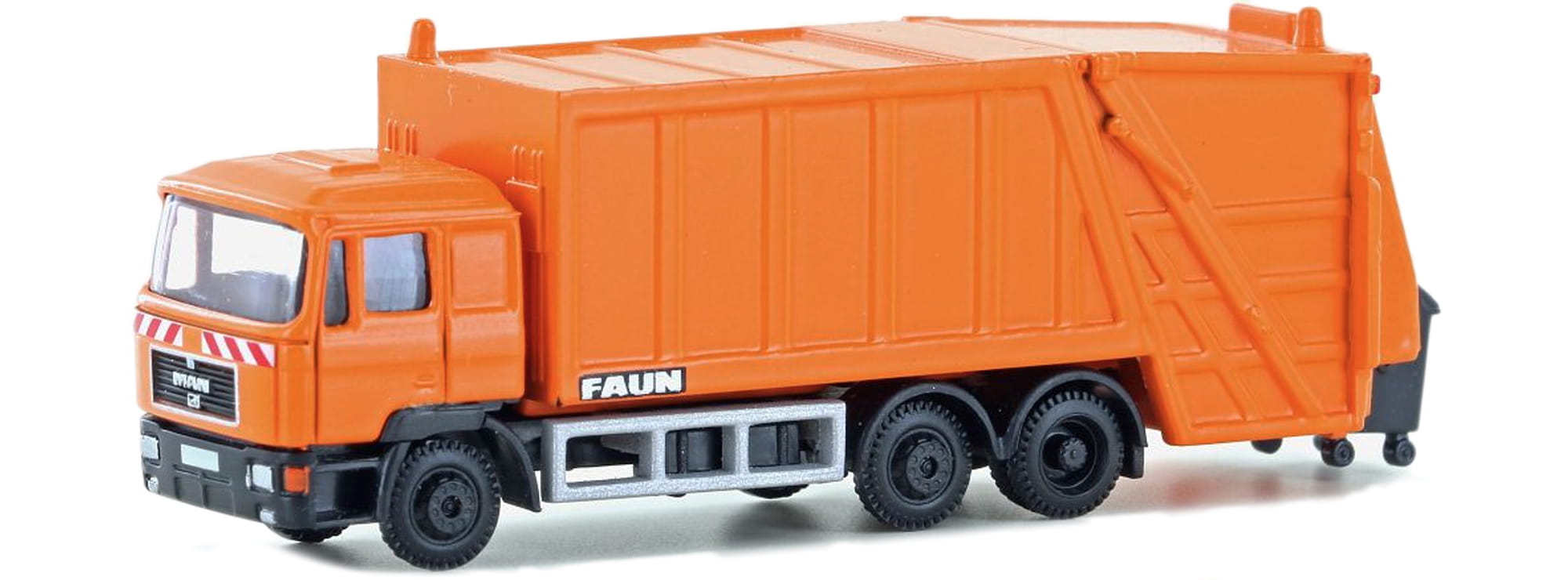 Formneuheit. Anfang der 1990er Jahre kamen die ersten neuen MAN F90 bzw. M90 zu den Entsorgungsbetrieben. Den „Vario-Press“ aufbau lieferte die Firma Faun. Die meisten Müllfahrzeuge wurden im charakteristischen Orange ausgeliefert. Es gibt jedoch auch Ausnahmen, so sind die Fahrzeuge des Entsorgers Alba im Großraum Berlin in dunkelblau anzutreffen.