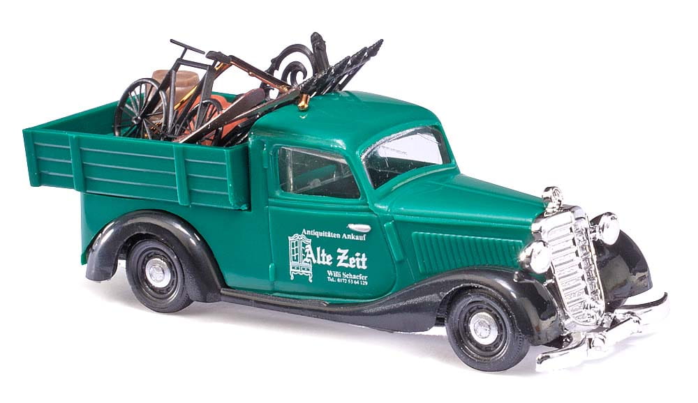 Antiquität oder Sperrmüll, die Meinungen gehen da meist sehr auseinander. Mit allerhand Trödel auf der Ladefläche ist dieses nostalgische Fahrzeug ein absoluter Blickfang und nicht nur ein originelles Vorbild. Da entdeckt man ein nostalgisches Schmiedeeisentor, verschnörkelte Lampenhalterungen, eine antike Terrakottaschale, ein paar alte Skier und weiteren alten »Plunder«. Für die einen ist es nur lästiger alter Kram, für die anderen sind es heiß begehrte und lang gesuchte Sammlerstücke. Das liebevoll gestaltete Modell ist auf jeden Fall eine Augenweide