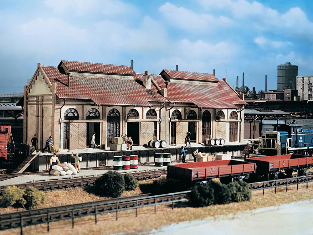 Der Güterverkehr der Eisenbahn beginnt und endet oft an einem Güterschuppen. Dort wird das Stückgut ein- und ausgeladen und an die Empfänger verteilt. Der Kunde kann einzelne Kisten, Fässer oder Paletten am Güterschuppen aufgeben. Die eingegangenen Waren werden nach Zielbahnhöfen sortiert in die Güterwagen geladen. Güterschuppen, Laderampen und Gepäckbahnsteige geben einer Bahnhofsanlage erst das richtige Gesicht und sollten auf keiner Modellbahnanlage fehlen.