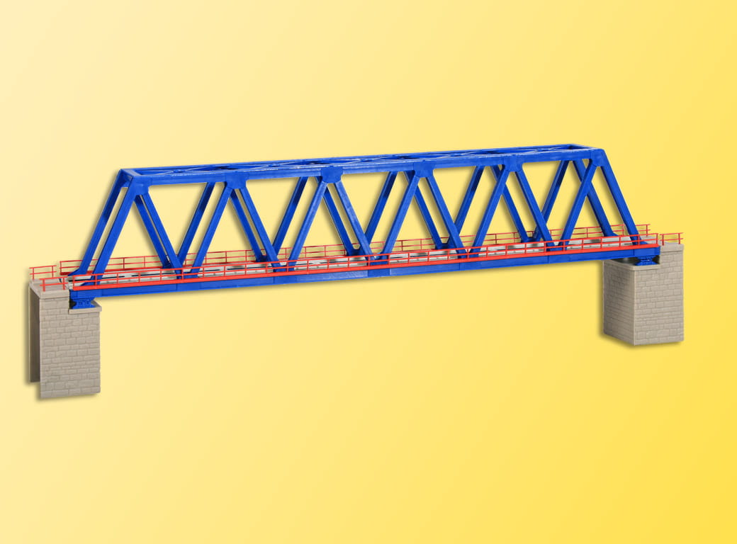 Eingleisig, in doppelter Ausführung ist ein zweigleisiger Fahrbetrieb möglich. Brückenköpfe enthalten. Für Märklin-mini-club: Bei zweigleisigem Aufbau Flexgleise verwenden, um den erforderlichen verbreiterten Parallelabstand auf den Brücken auszugleichen. Baugröße N nicht für Oberleitungsbetrieb geeignet. Baugröße Z für Oberleitungsbetrieb geeignet. ca. 31,8x3,4x4,7 cm Fahrbahnhöhe