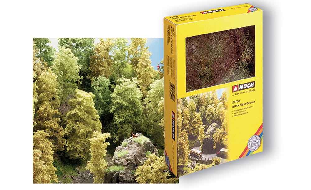 Sie können die Naturbäume sowohl naturbelassen auf Ihrer Anlage integrieren als auch mit NOCH Flockage oder NOCH Blattwerk beflocken.