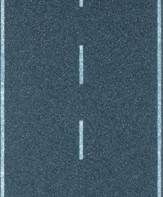 40 mm breit, 2m lang, mit Mittellinien und seitlichen Begrenzungslinien. Busch Straßenbänder sind selbstklebend, flexibel und nur 0,6 mm dünn