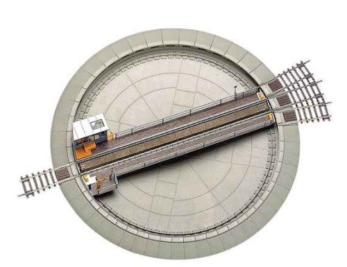 Wird der Drehscheibenschalter losgelassen, hält die Drehscheibe exakt am nächsten Gleisabgang an. Technisch ist die Drehscheibe für eine Vorwahlsteuerung, die ein direktes Anwählen des gewünschten Gleisabgangs ermöglicht, vorbereitet. Wie beim Vorbild können auch beim ROCO-Modell zwei Drehgeschwindigkeiten vorgewählt werden. Die Fahrstromeinspeisung erfolgt in die Drehbühne. Die Fahrspannungsversorgung der Gleisabgänge kann über das Steuergerät zugeordnet werden. Damit wird verhindert, dass bei zwei gegenüber liegenden Gleisabgängen eine evtl. abgestellte Lok unabsichtlich losfährt.