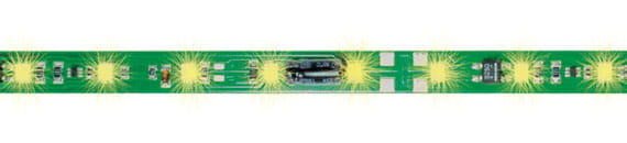 Mehrfach teilbare Innenbeleuchtung mit wartungsfreien, stromsparenden LEDs und hellem Licht. Helligkeit durch Potentiometer einstellbar. Zusätzlich zwei rote LEDs für Zugschlussbeleuchtung enthalten.