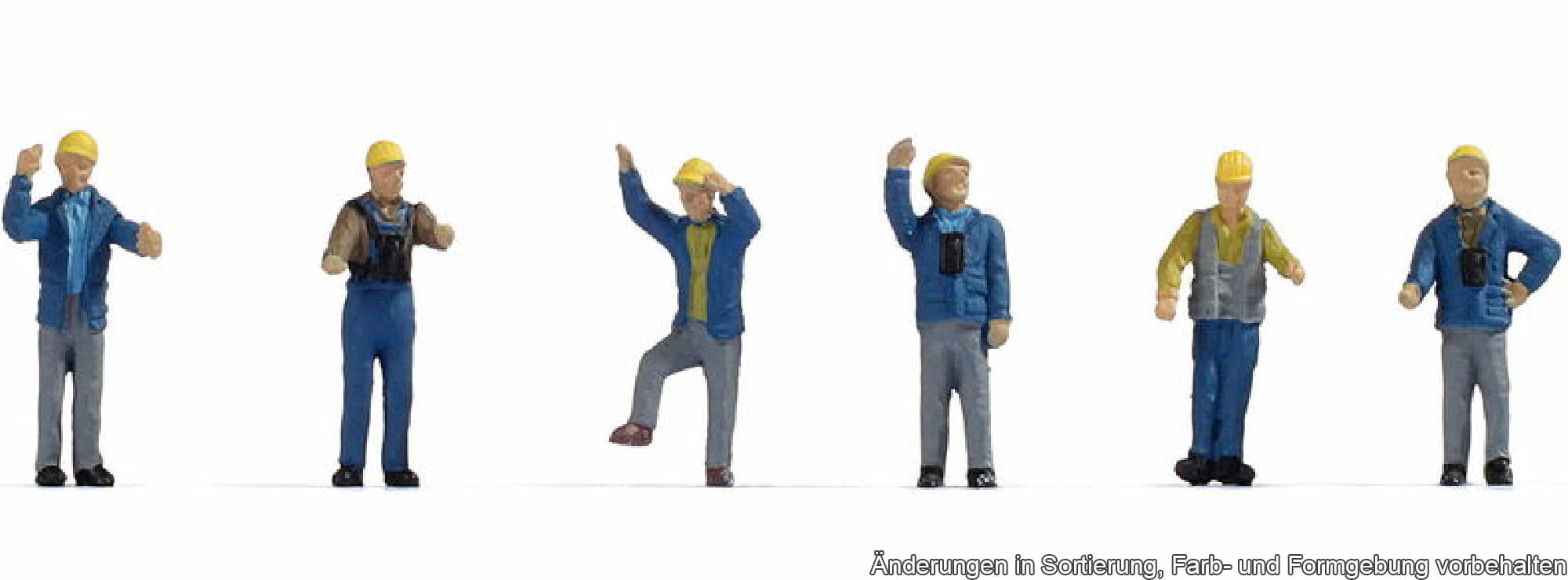 Inhalt: Das Set enthält sechs handbemalte Rangierer für die Spur TT (Maßstab 1:120, ca. 1,5 cm hoch).