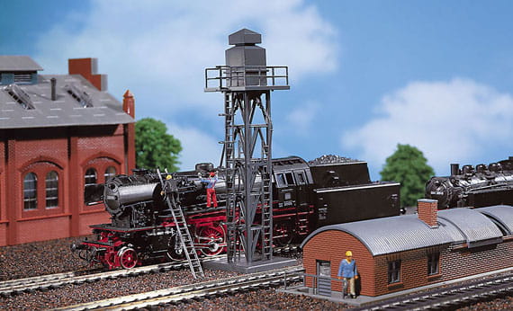 Ein Modell-Set für das Dampf-BW. Sandturm mit Hochbehälter. Sandhaus mit verschiebbarem Dach für die Beladung und ein Beutel »Sand« zur realistischen Dekoration