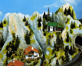 Von beeindruckendem Format! Einzigartig - so präsentiert sich das Silvretta-Gebiet im Original. Und seine gelungene Nachbildung im Modell steht dem um nichts nach! Genau wie das Original zeigt das NOCH Fertiggelände "Silvretta" eine eindrucksvolle Gebirgslandschaft mit voll funktionsfähiger Seilbahn und den typischen Stauseen und Bachläufen (die natürlich für fließendes asser geeignet sind). 3 unabhängig fahrende Züge, zahlreiche Brücken und Tunnelstrecken sowie Bahnhöfe mit ausreichend Abstellgleisen lassen keine Modellbahner- ünsche offen. Lieferumfang: - Grundanlage handkoloriert und begrast - montiert auf stabilem Rahmenunterbau - eingebaute Tunnelunterlagen - Brücken-Bausatz - Gleispläne für diese Systeme: Märklin Metall, Märklin Kunststoff, Märklin C-Gleis, Fleischmann Modell, Fleischmann Profi, zum Aufbau in Spur TT geeignetBitte beachten Sie: Der Einsatz von extrem langen aggons führt wegen der dadurch bedingten Ausladung in engen Kurvenstrecken zu Problemen. Da in allen Fertiggeländen auch die kleinsten Radien der Hersteller verbaut werden, kann es dazu kommen, dass lange aggons am Gelände, auf Brücken und an Tunnel Ein- und Ausfahrten streifen.