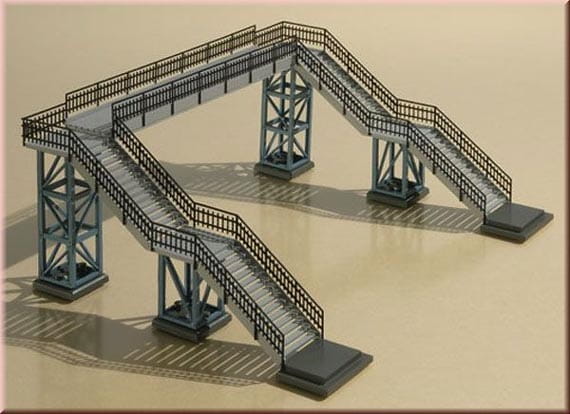 Übergang mit zwei Treppenaufgängen für zweigleisige Strecken, der in mehreren Varianten eingebaut werden kann.