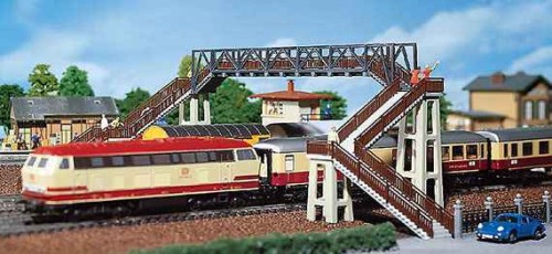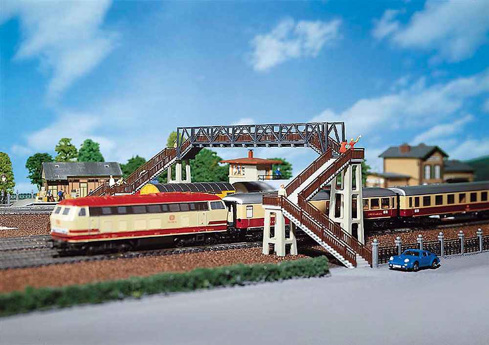 Dieser Übergang mit verschieden baubaren Treppen und vier Pfeilern kann bis zu vier Gleise überbrücken