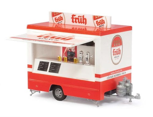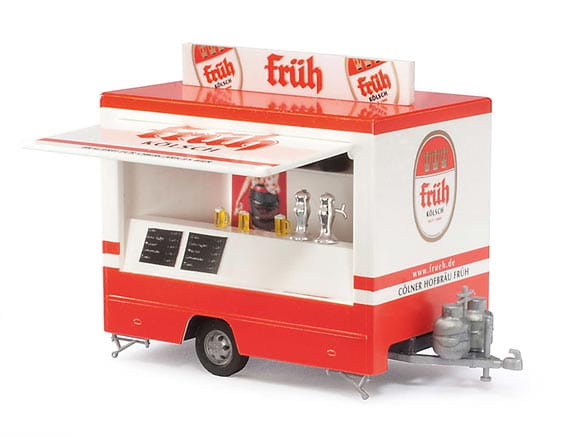 Besonders erwähnenswert ist das Modell des Ausschankwagen-Anhängers. Die aufklappbaren Seitenteile lassen nach dem Öffnen einen Blick ins Innere zu, so wird jeweils die Theke mit zwei hoch filigranen, verchromten Zapfhähnen sichtbar
