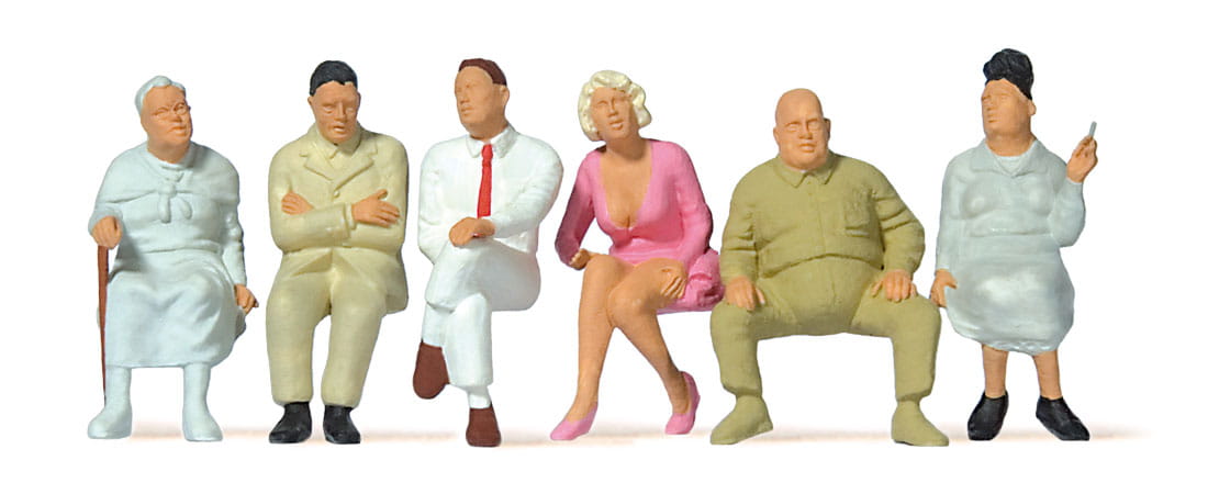 Set mit 6 einzelnen Miniaturfiguren aus Kunststoff, sorgfältig handbemalt, im Maßstab 1:43 - 1:45 (Spur 0).