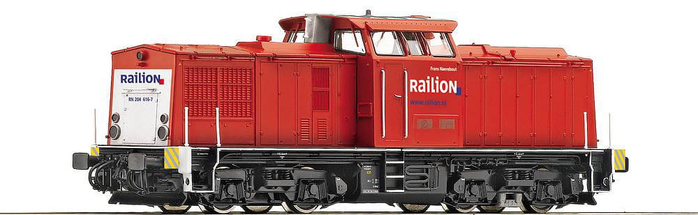 Ausführung in verkehrsroter „Railion“-Lackierung. Betriebsnummer 204 616-7. 3-Licht Spitzensignal und 2 rote Schlusslichter. LED-Beleuchtung. Motor mit Schwungmasse. Antrieb auf vier Achsen. Zur Erhöhung der Zugkraft zwei Räder mit Haftreifen. Schnittstelle nach NEM 652 zur Aufnahme eines Digital-Decoders. Mit Kurzkupplungskinematik