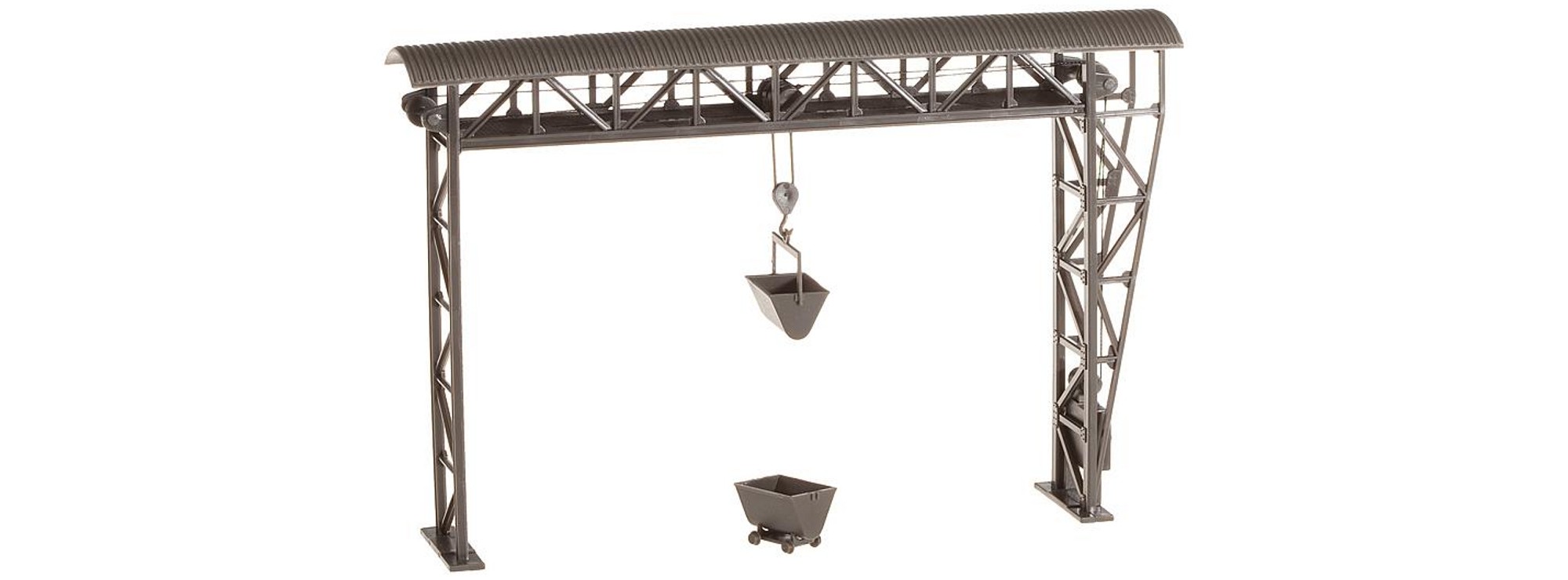 Dieses sehr bahntypische Modell kann nicht nur im Bahnbetriebswerk eingesetzt werden, sondern überall, wo etwas gehoben und verladen werden soll. Mit den Bausatzteilen kann ein Bockkran gebaut werden, der 2 oder 3 Gleise überspannt