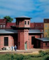 Tore manuell beweglich, Lampen liegen bei. Lokschuppen und Wasserturm sind auch einzeln aufstellbar. Den Wasserbehälter erreicht man über eine filigrane Leiter.