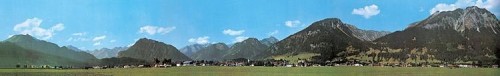 Mit diesem 3-teiligen Hintergrund kann jetzt die beliebte Hintergrundlandschaft »Oberstdorf« (180516) verlängert werden und zwar beliebig links oder rechts. Je 1x 180516 und 180517 ergeben so bereits einen attraktiven Anlagenabschluss von 5800 mm. Noch längere Kombinationen sind unbegrenzt möglich