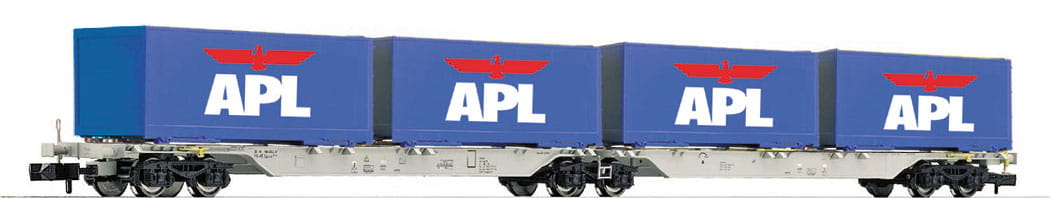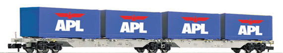 Container-Doppeltragwagen, beladen mit APL-Containern, der Ahaus Alstätter Eisenbahn AG (AAE), Epoche V