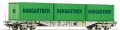 4-achsiger Containertragwagen Typ Sgns der Schweizerischen Bundesbahnen (SBB/CFF/FFS), Epoche V, in aktuellem Betriebszustand. Beladen mit 2 Wechselbrücken mit Gardinenplanen der Spedition Hangartner.