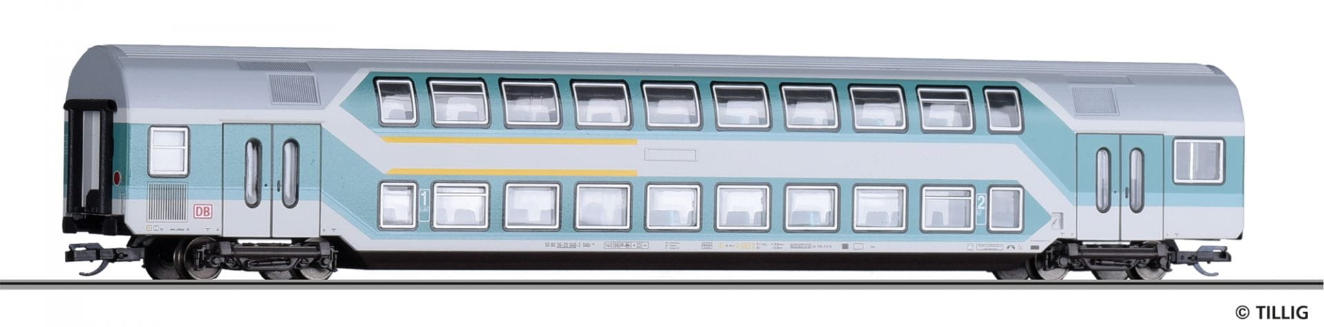 Wagon piętrowy 1/2-klasy typu DABz 755 , DB, skala TT, TILLIG 16803