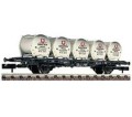 Vorbildgetreu lackiert und beschriftet. Beladen mit 5 abnehmbaren Flüssigkeitsbehältern. Kupplungsaufnahme nach NEM 355 mit KK-Kinematik.