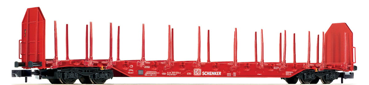 Der 4-achsige Güterwagen ist mit 24 Rungen bestückt und mit Containerzapfen ausgerüstet.