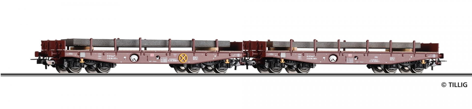 Zestaw 2-wagnów typu Rmms 662 z ładunkiem stali, DR, skala H0, TILLIG 70059