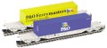 Die Tragwagen sind beladen mit Containern der Spedition "P&O".