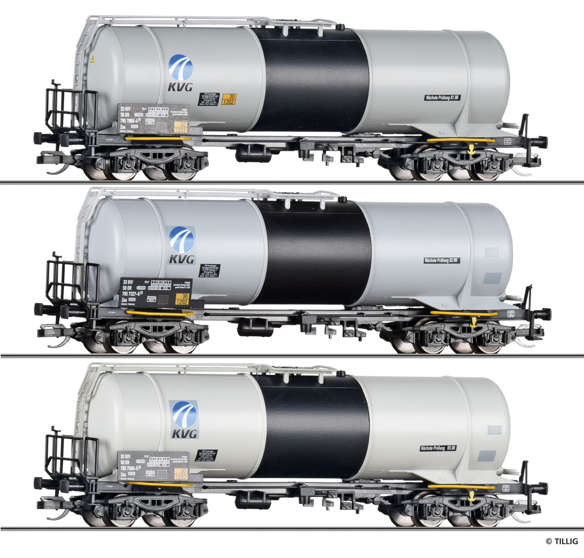 Zestaw 3-wagonów cystern KVG , DR, skala TT, TILLIG 01089