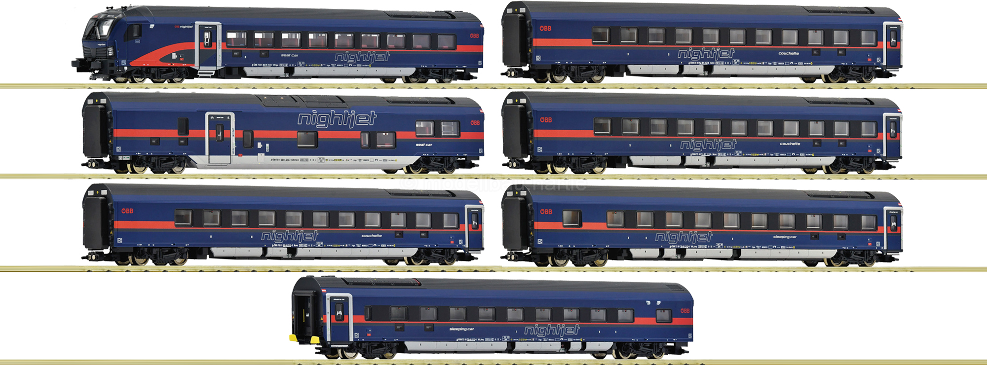 7-teiliges Nightjet-Wagenset der ÖBB | Epoche VI | Spur N 1/160.