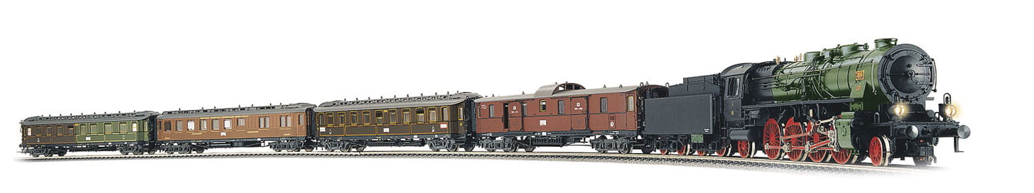 Sämtliche Fahrzeuge besitzen eine Kulissenmechanik für echten Kurzkupplungsbetrieb. Die Reisezugwagen sind für den Einbau einer Innenbeleuchtung vorgesehen (Art.-Nr. 6445).Die Lok wird im Tender angetrieben von einem 5-poligen wartungsfreien Motor.