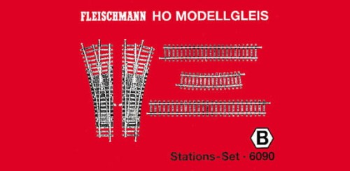 Inhalt: 1 Weiche links 6070, 1 Weiche rechts 6071, 13 gerade Gleise (11 x 6001, 2 x 6005),