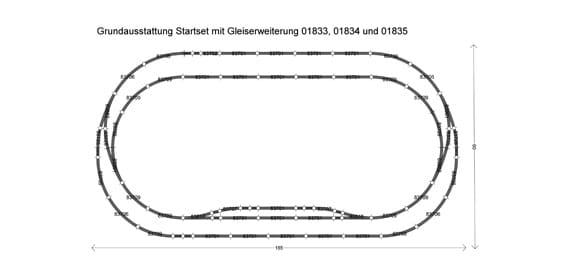 - eine Innenbogenweiche links (83862) mit Ausgleichsstück (83725)