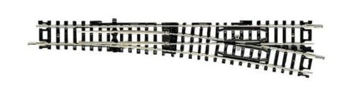 Länge des geraden Gleises 155 mm, Weichenwinkel 10°, Radius des Zweiggleises 765 mm (entspricht R7)