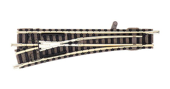 Normalweiche für Handbetrieb, links. Mit stromleitendem Herzstück