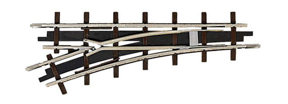 Handweiche links, Länge 66,6 mm, Radius 175 mm, 22,5°.